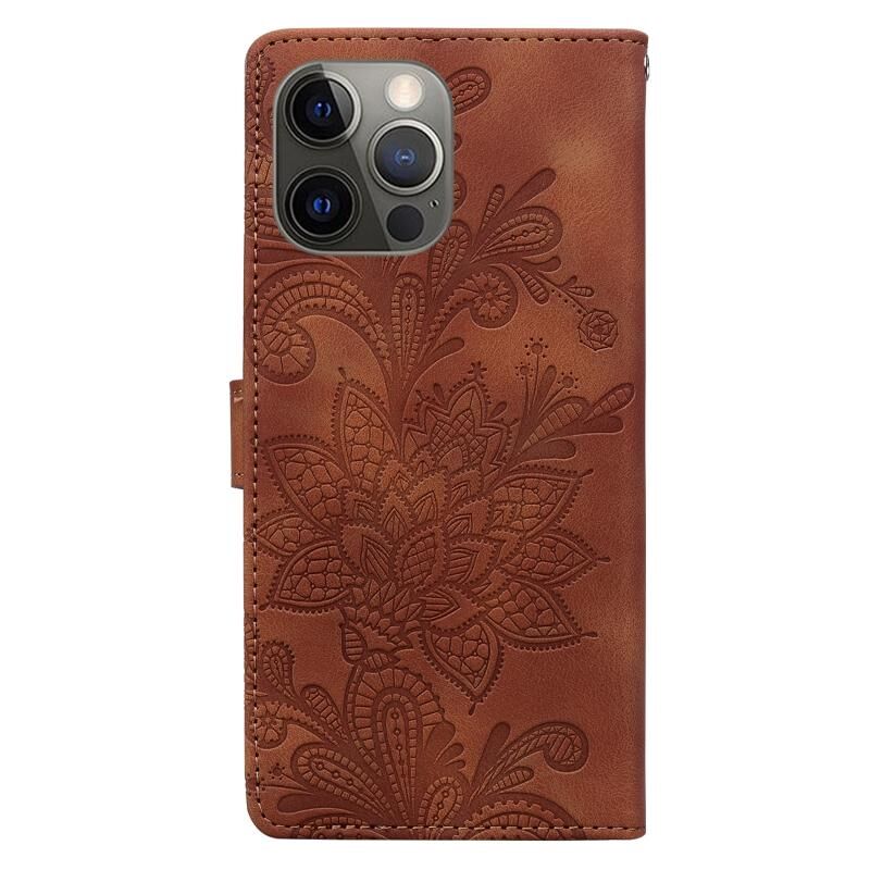 Θήκη τηλεφώνου για iPhone 12 Pro με δαντέλα, λουλουδάτο ανάγλυφο, μαγνητικό κούμπωμα και λουρί καρπού (Πράσινο)