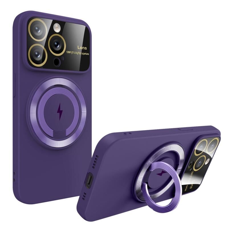 For iPhone 12 Pro Large Window MagSafe Magnetic Holder Phone Case(Dark Purple)