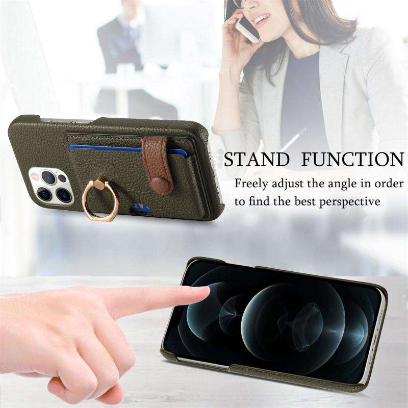 For iPhone 12 Pro Litchi Leather Oil Edge Ring Card Back Phone Case(Green)