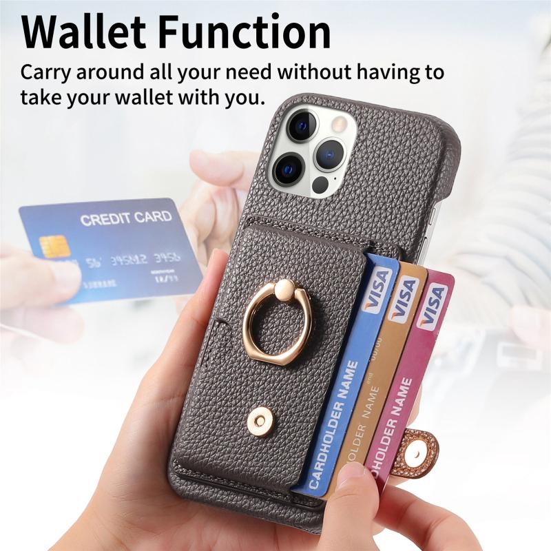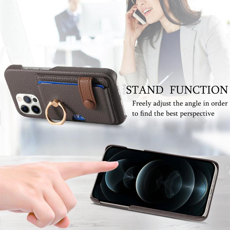 For iPhone 12 Pro Litchi Leather Oil Edge Ring Card Back Phone Case(Grey)