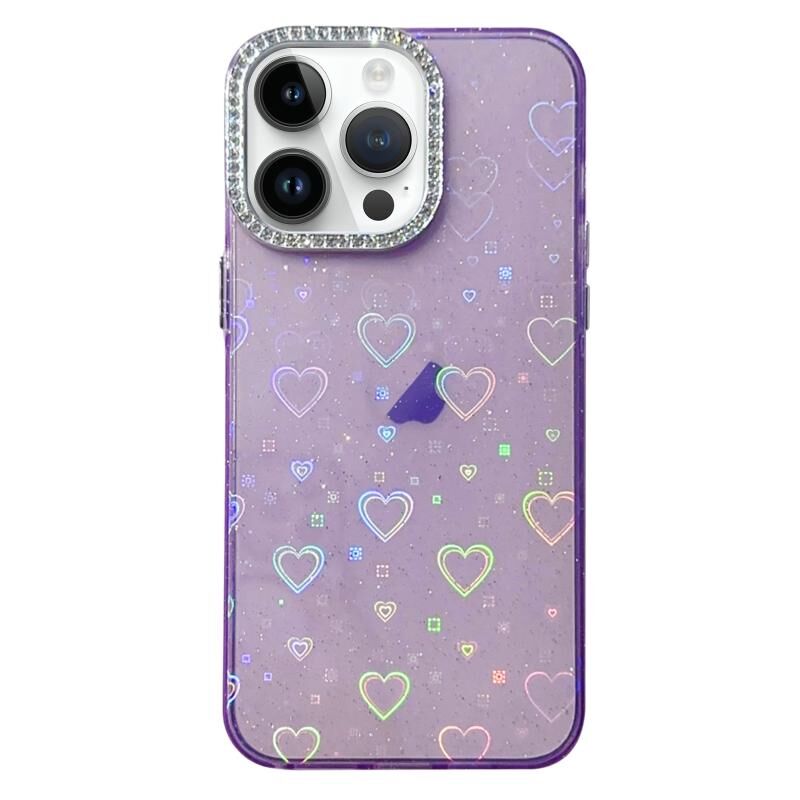 Θήκη τηλεφώνου IMD Acrylic για iPhone 12 Pro με σχέδιο καρδιάς και διαμαντένια στεφάνη φακού (Ροζ)