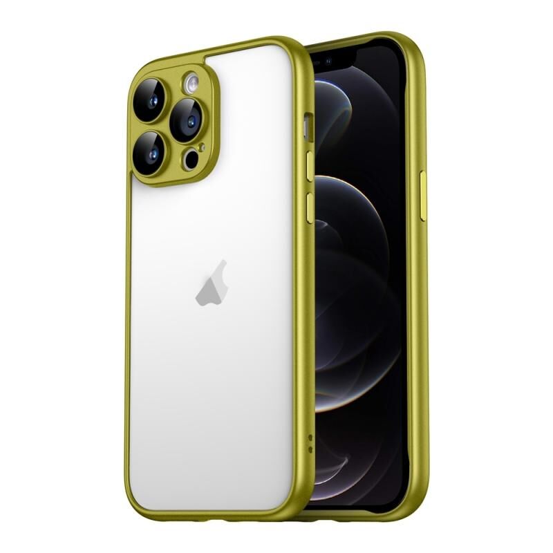 Για iPhone 12 Pro Μακαρόν θήκη PC τηλεφώνου με καθαρό πλαίσιο και προστατευτική μεμβράνη φακού (Μαύρο)