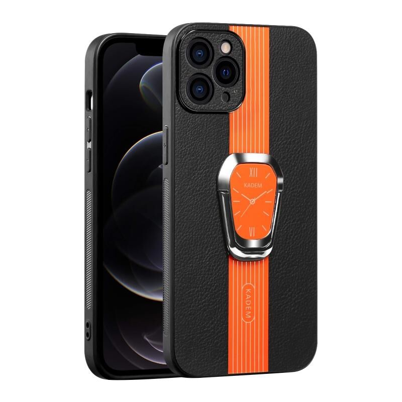 For iPhone 12 Pro Magnetic Litchi Leather Back Phone Case with Holder(Orange)