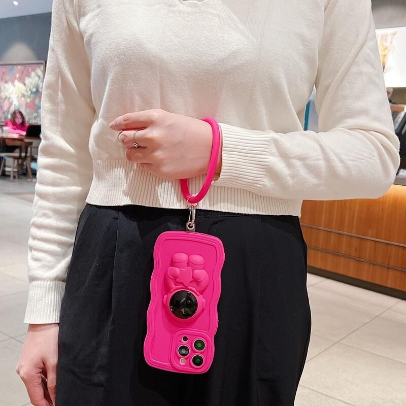 Θήκη σιλικόνης για iPhone 12 Pro Max με 3D σχέδιο αστροναύτη και αίσθηση δέρματος, με λουρί καρπού (Μαύρο)