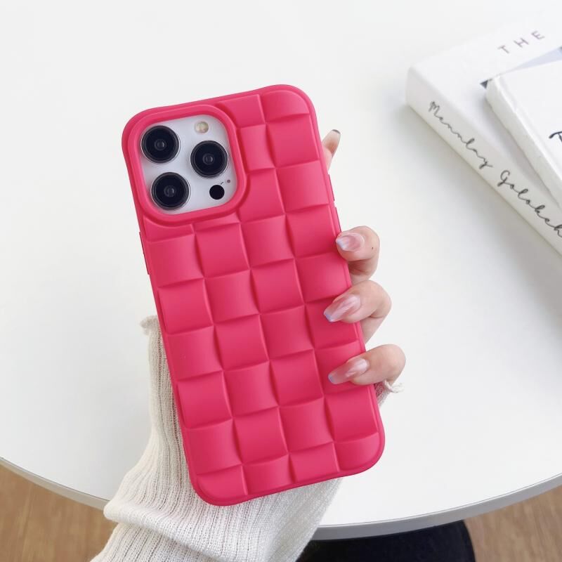 For iPhone 12 Pro Max 3D Cube Weave Texture Skin Feel Phone Case(Rose Red)