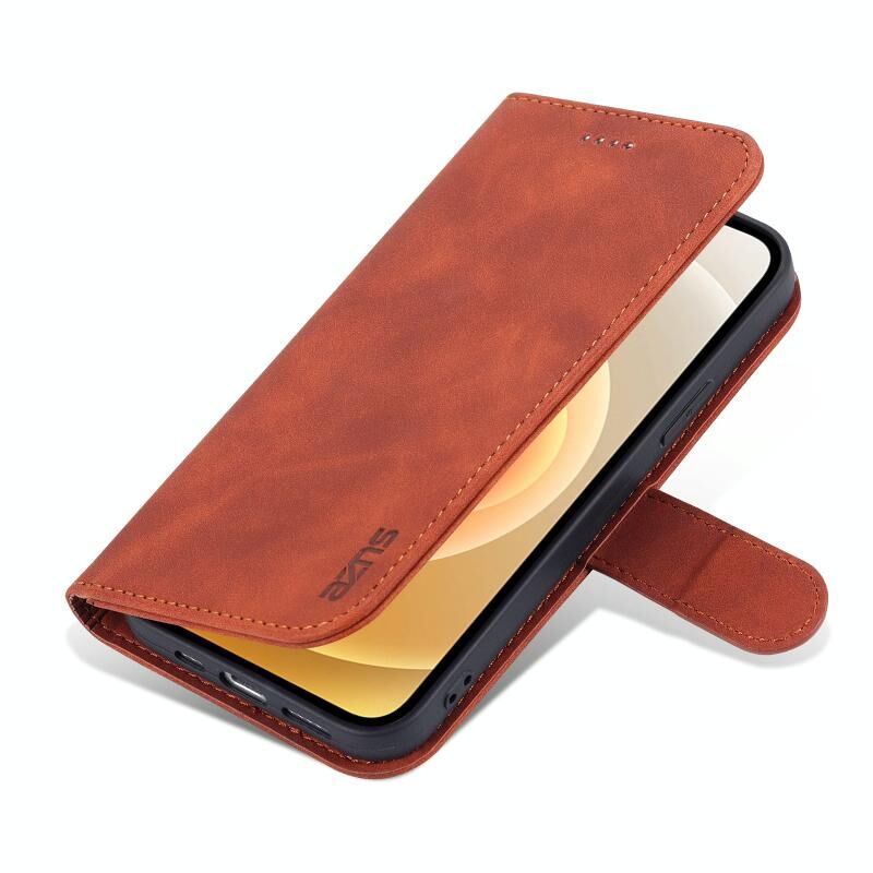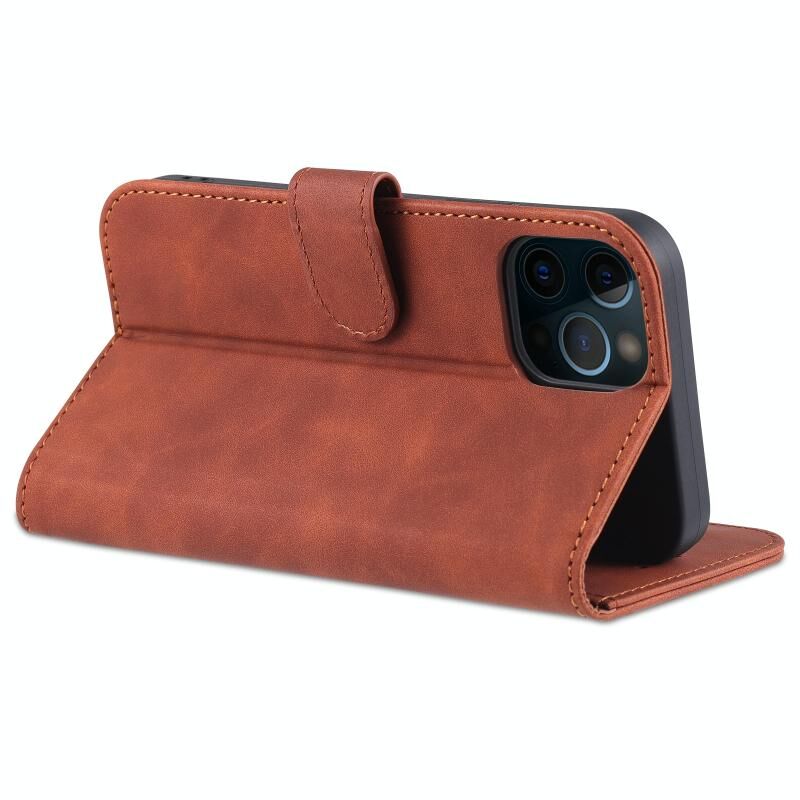 Θήκη δέρματος οριζόντιας αναδίπλωσης για iPhone 12 Pro Max AZNS με υφή μοσχαρίσιου δέρματος, υποδοχές για κάρτες, βάση & πορτοφόλι (Καφέ) (AZNS)
