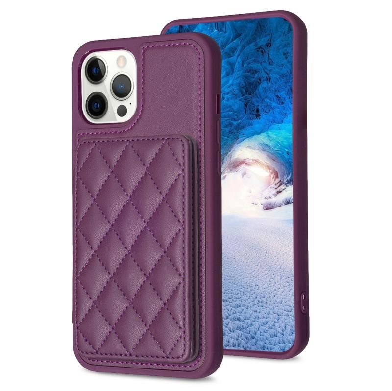 For iPhone 12 Pro Max BF25 Square Plaid Card Bag Holder Phone Case(Dark Purple)