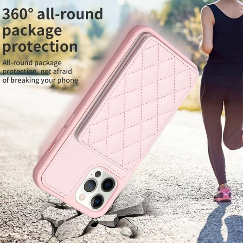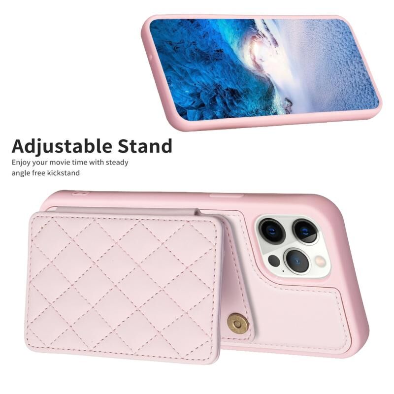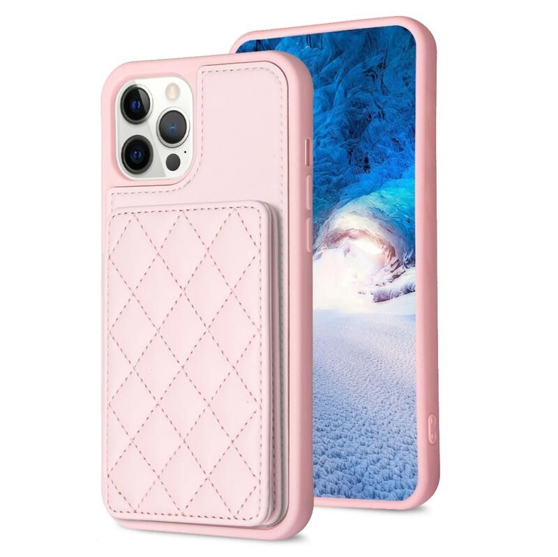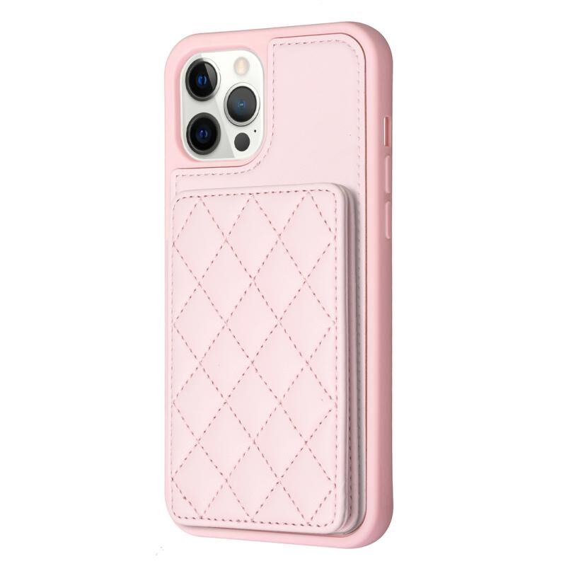 For iPhone 12 Pro Max BF25 Square Plaid Card Bag Holder Phone Case(Pink)