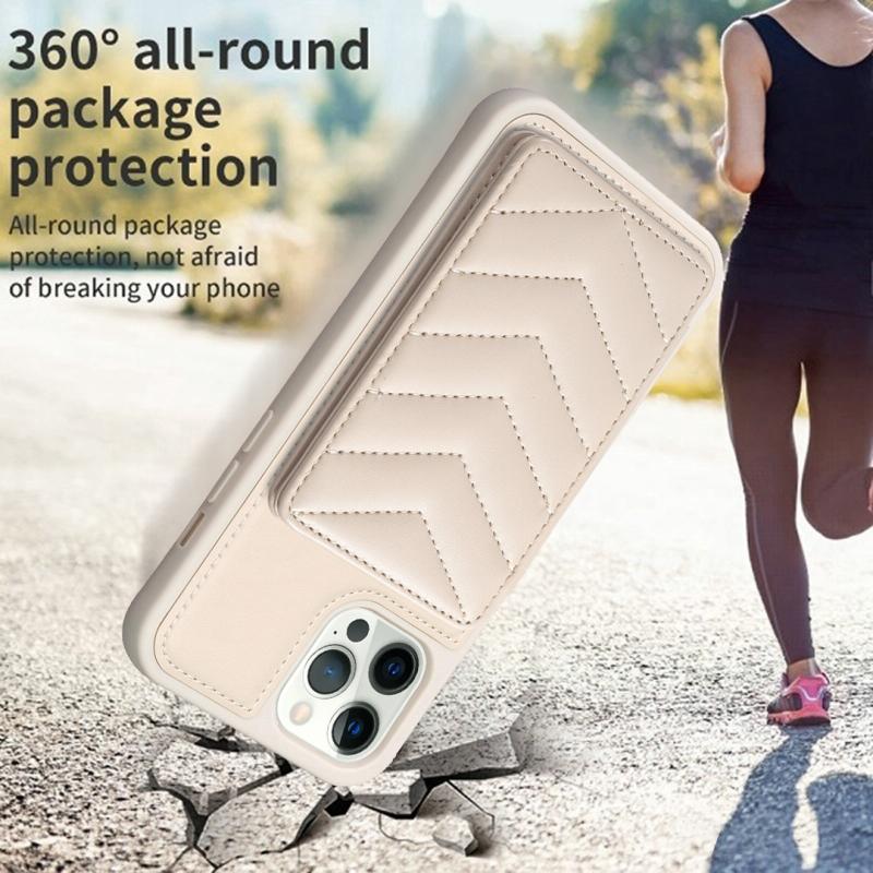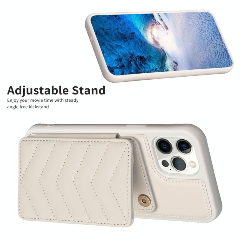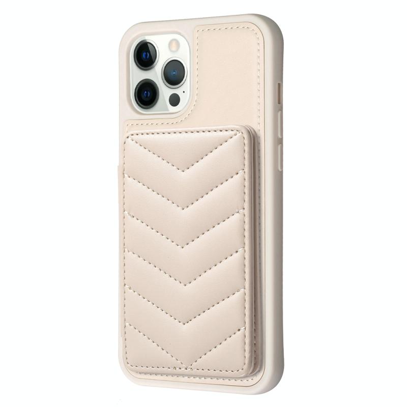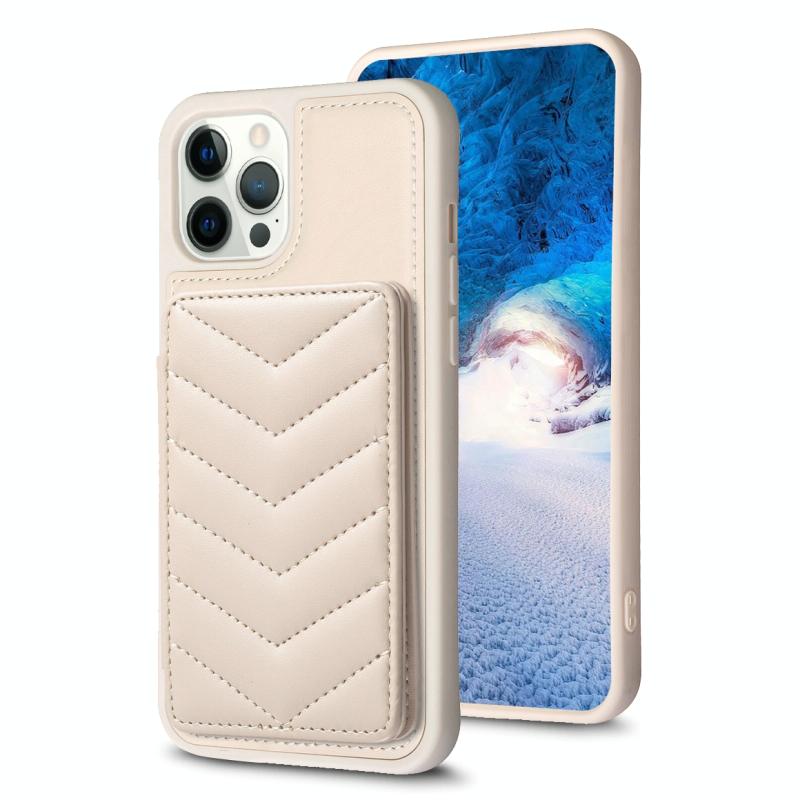 Για iPhone 12 Pro Max Θήκη με Κάρτες και Στήριξη - Wave Pattern (Μπεζ)