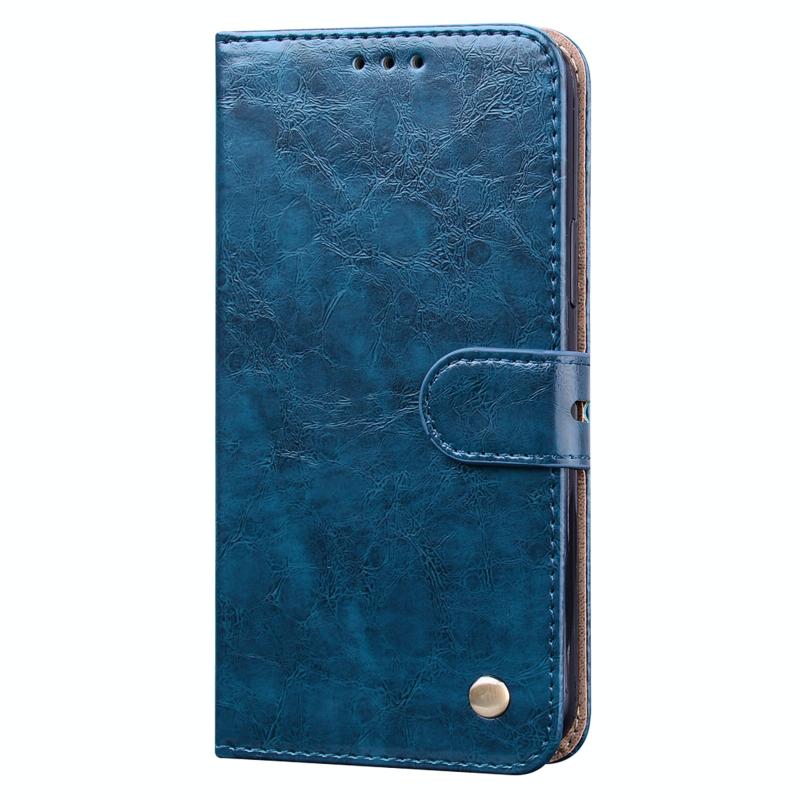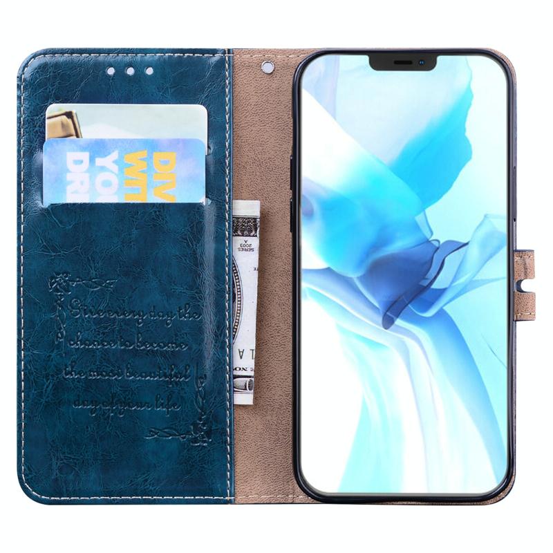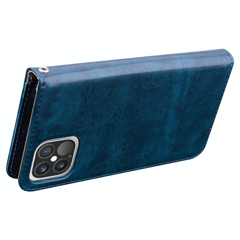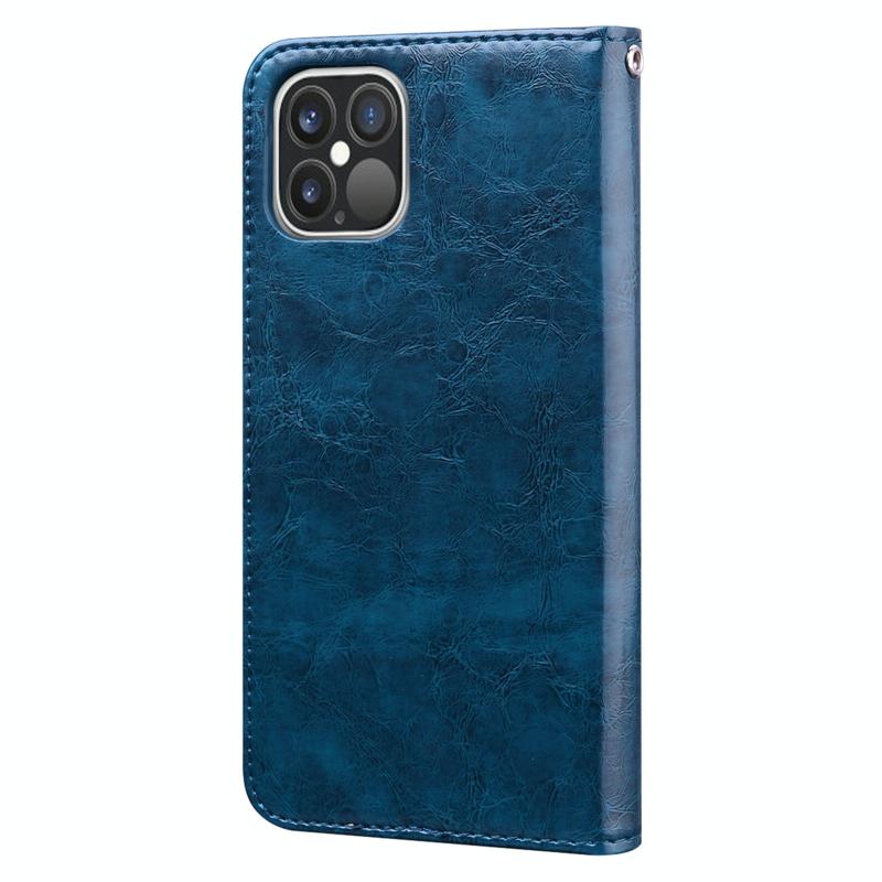 For iPhone 12 Pro Max Business Style Oil Wax Texture Horizontal Flip Leather Case with Holder & Card Slots & Wallet(Blue)