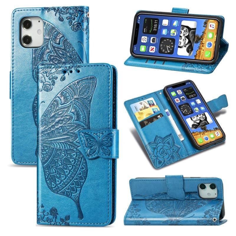 Θήκη βιβλίου από δέρμα για iPhone 12 Pro Max με σχέδιο πεταλούδας και λουλουδιών, οριζόντια, με βάση στήριξης / υποδοχή κάρτας / πορτοφόλι / κορδόνι (Χρυσό ροζ)
