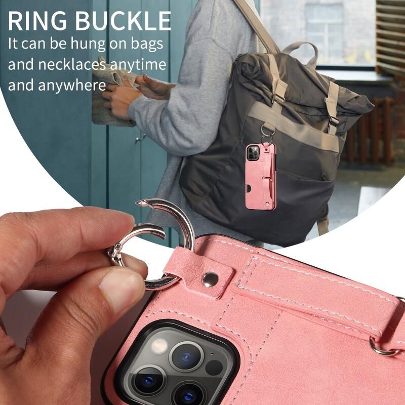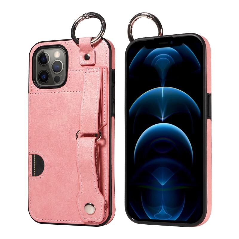 Θήκη τηλεφώνου για iPhone 12 Pro Max με υφή δέρματος μοσχαριού, θήκη καρπού με υποδοχή κάρτας και δακτύλιο (Ροζ)