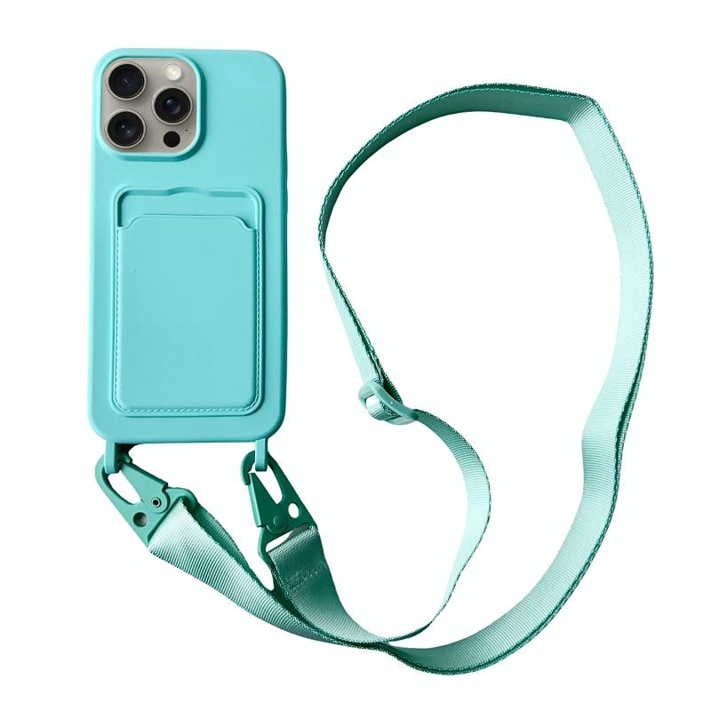 Θήκη για iPhone 12 Pro Max με υποδοχή κάρτας, υγρή σιλικόνη με κορδόνι (Μαύρο)