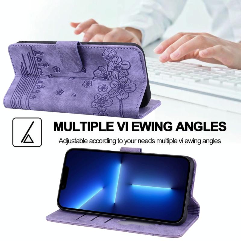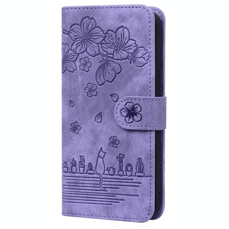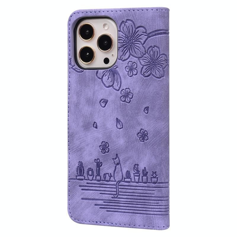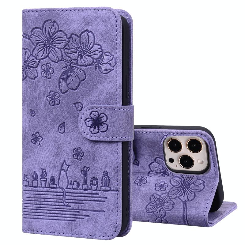 Θήκη δερμάτινη με ανάγλυφο σχέδιο Sakura Cat για iPhone 12 Pro Max (Μωβ)