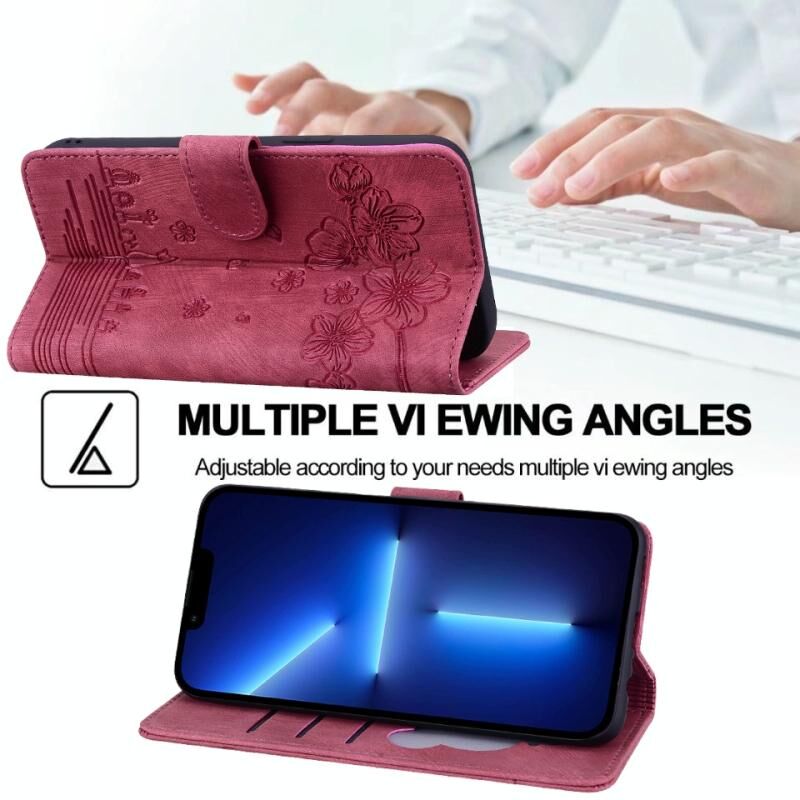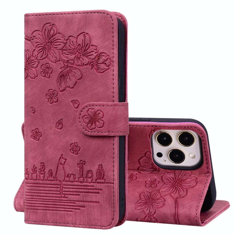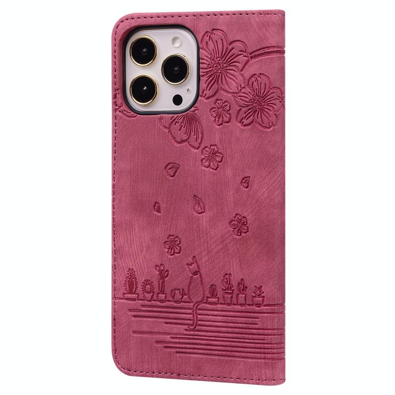 Θήκη δερμάτινη με ανάγλυφο σχέδιο Sakura Cat για iPhone 12 Pro Max (Μπορντό)