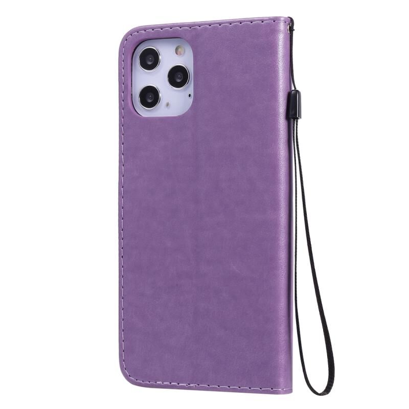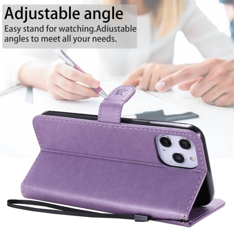 Θήκη δέρματος οριζόντιας αναδίπλωσης για iPhone 12 Pro Max με ανάγλυφο σχέδιο Γάτας-Μέλισσας, αντικραδασμική, με βάση στήριξης & θήκες καρτών & πορτοφόλι (Μωβ)