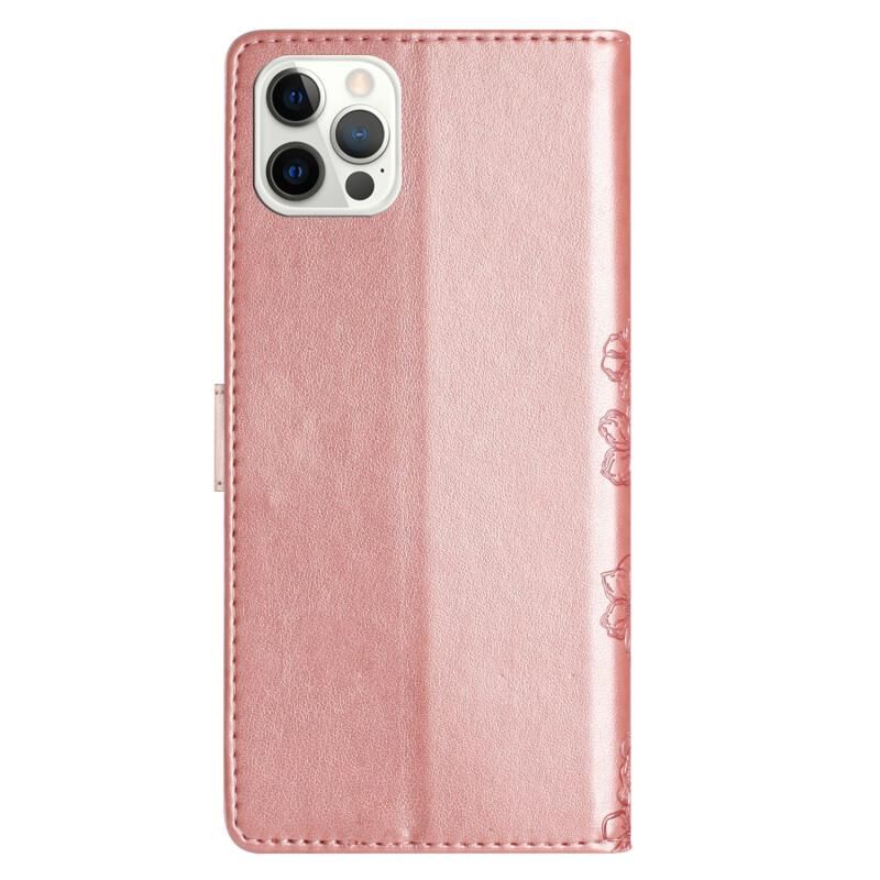 Για iPhone 12 Pro Max Θήκη PU με ανάγλυφο σχέδιο κερασιών & πεταλούδας (Ροζ Χρυσό)