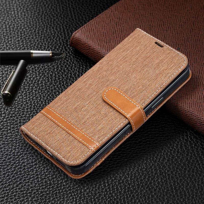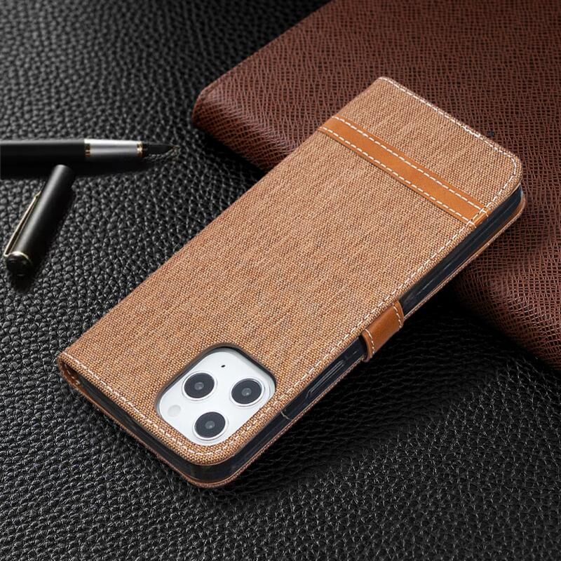 Θήκη δέρματος οριζόντιας αναδίπλωσης για iPhone 12 Pro Max με υφή τζιν, αντιστοίχιση χρώματος, με βάση & υποδοχές καρτών & πορτοφόλι & λουρί (Μωβ)