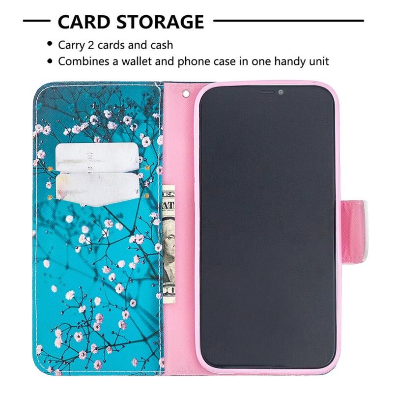 Θήκη δέρματος οριζόντιας αναδίπλωσης με σχέδιο έγχρωμης ζωγραφικής για iPhone 12 Pro Max με βάση & υποδοχές καρτών & πορτοφόλι (Λουλούδι Δαμασκηνιάς)