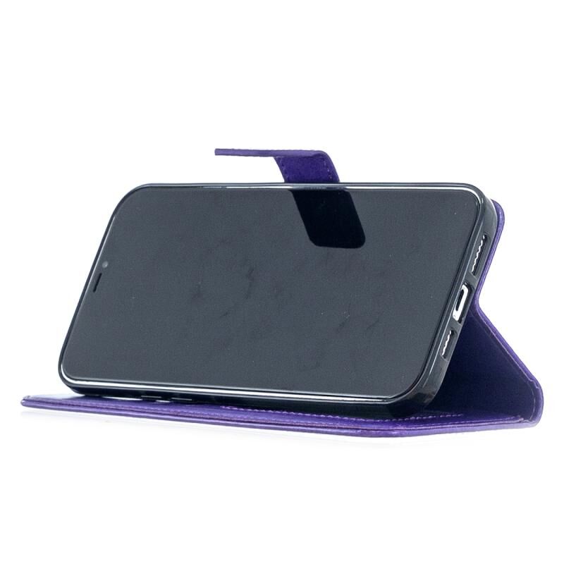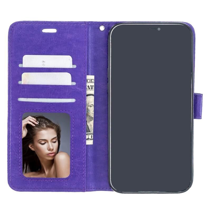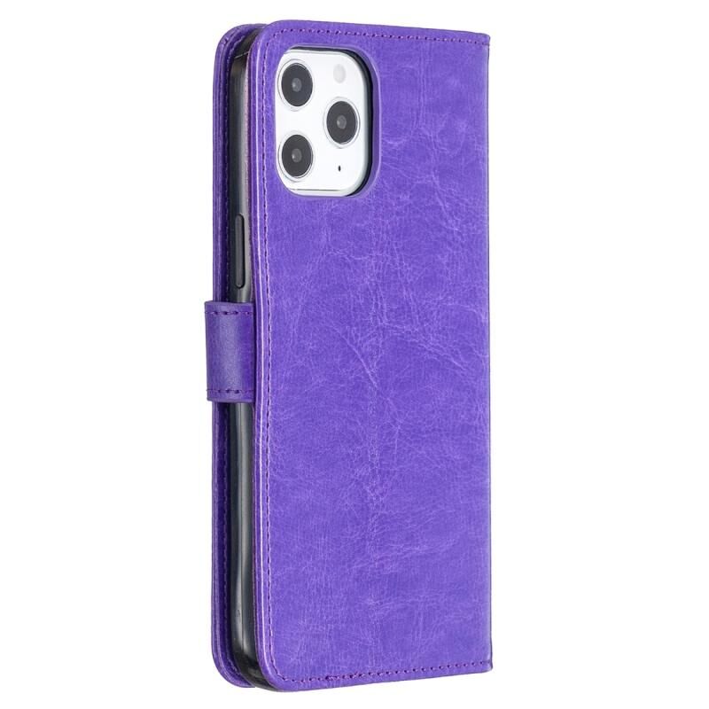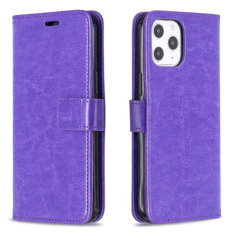 Θήκη δέρματος οριζόντιας αναδίπλωσης για iPhone 12 Pro Max με υφή Crazy Horse, με βάση & υποδοχές καρτών & πορτοφόλι & κορνίζα φωτογραφιών (Μωβ)