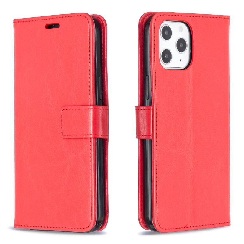 Θήκη δέρματος οριζόντιας αναδίπλωσης για iPhone 12 Pro Max με υφή Crazy Horse, με βάση στήριξης & θήκες καρτών & πορτοφόλι & κορνίζα φωτογραφιών (Μαύρο)
