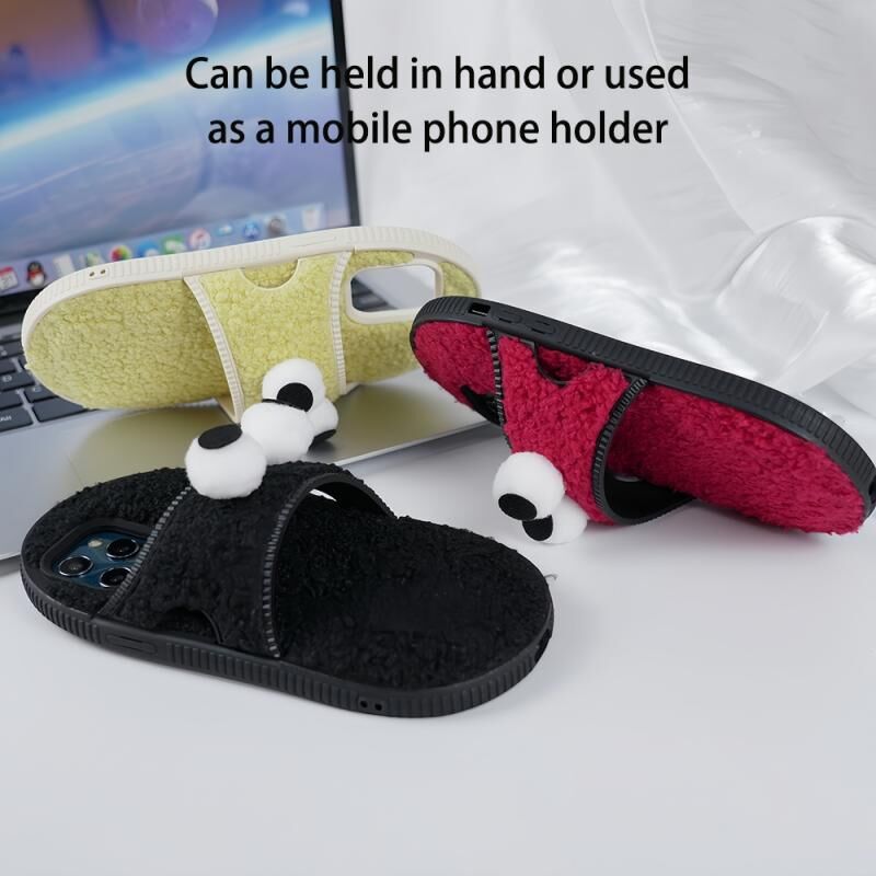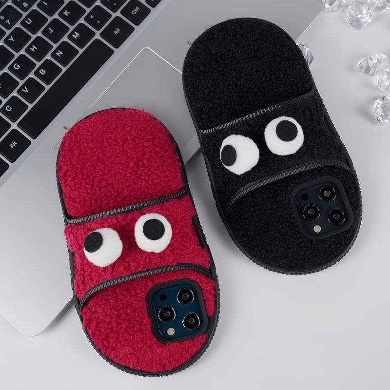 Θήκη κινητού τηλεφώνου TPU για iPhone 12 Pro Max, δημιουργική βελούδινη με μεγάλα μάτια και σχέδιο παντόφλας (Κόκκινο)