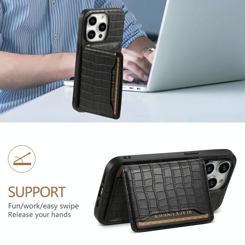 Θήκη κινητού τηλεφώνου πλήρους κάλυψης για iPhone 12 Pro Max με σχέδιο τσάντας κάρτας υφής κροκόδειλου (Καφέ)