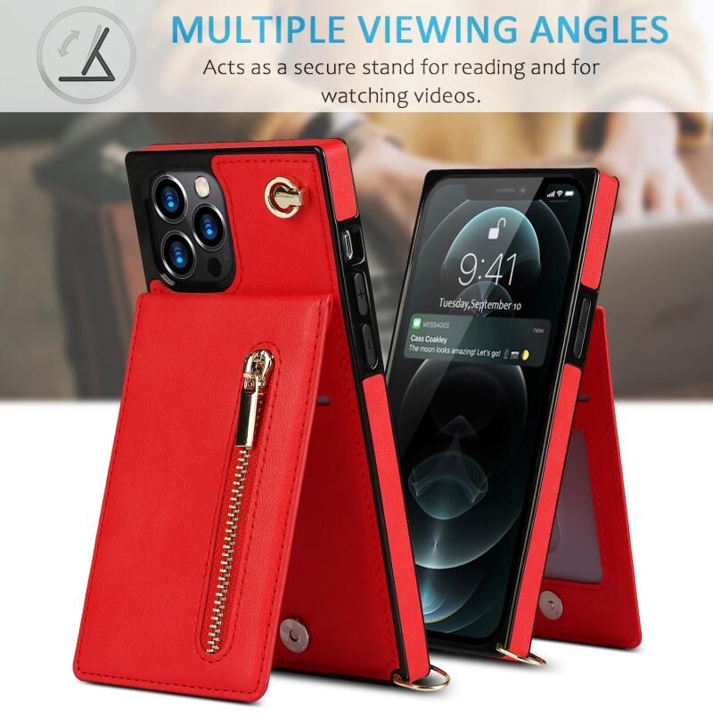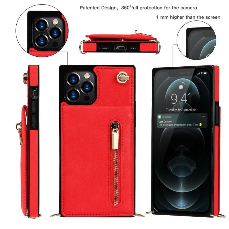 For iPhone 12 Pro Max Cross-body Zipper Square TPU+PU Back Cover Case with Holder & Card Slots & Wallet & Strap(Red)