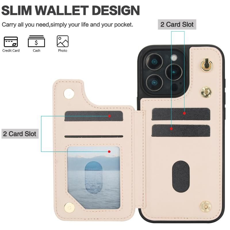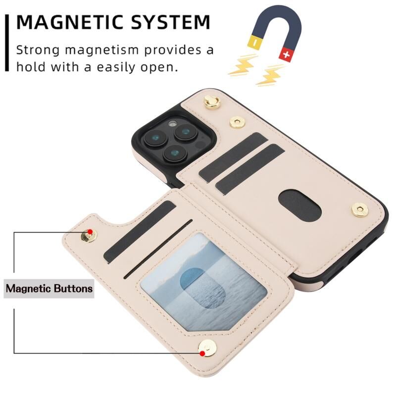 For iPhone 12 Pro Max Crossbody Dual-Buckle Wallet Back Leather Phone Case(Apricot)
