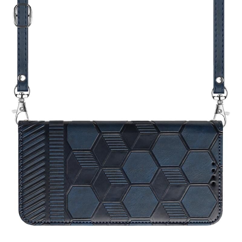 Θήκη iPhone 12 Pro Max Crossbody, Δερμάτινη με Μαγνητικό Κλείσιμο & Υφή Μπάλας (Σκούρο Μπλε)