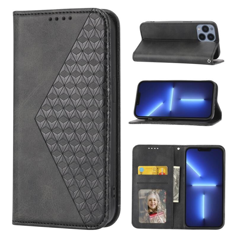 Θήκη τηλεφώνου από δέρμα με μαγνητικό κλείσιμο, υφή μοσχαριού σε κυβικό πλέγμα για iPhone 12 Pro Max (Μαύρο)