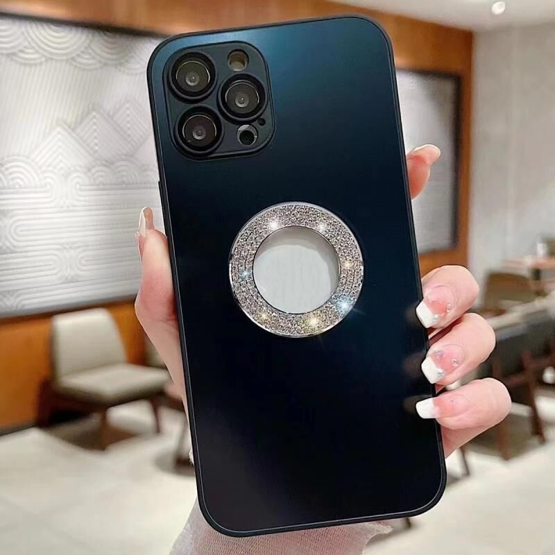 Θήκη τηλεφώνου για iPhone 12 Pro Max, με γυαλί διαμαντιού και PC (Πολυανθρακικό) με ματ φινίρισμα (Μαύρο)