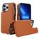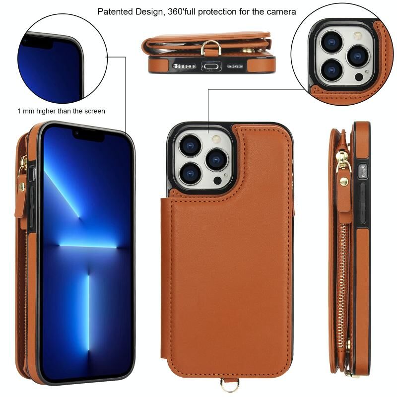 For iPhone 12 Pro Max Double Flap Zipper RFID Leather Phone Case with Short Lanyard(Brown)