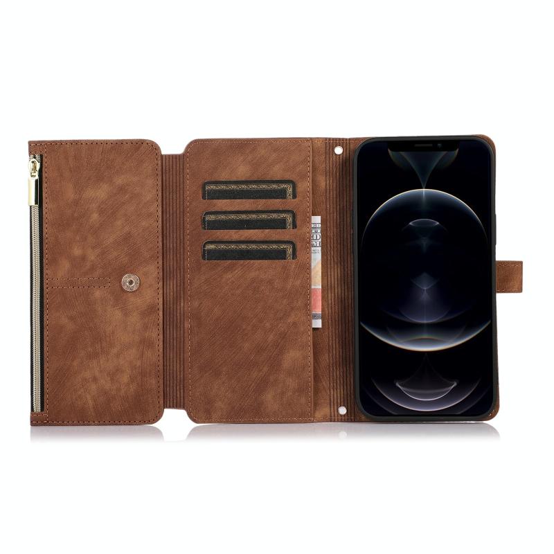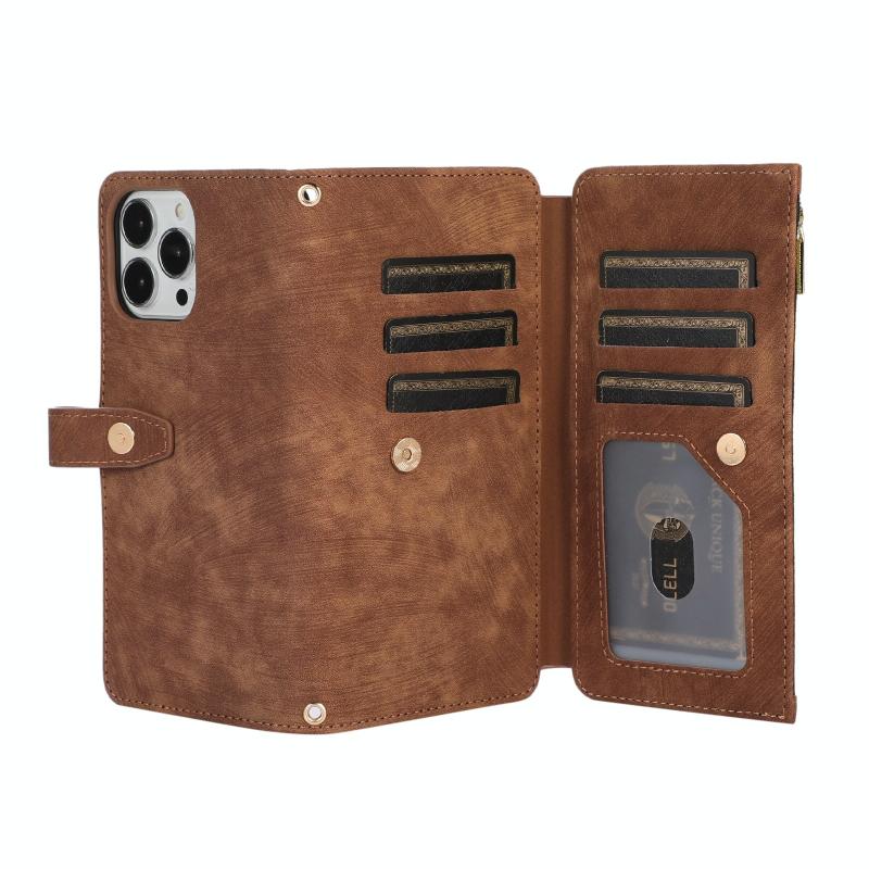 For iPhone 12 Pro Max Dream 9-Card Wallet Zipper Bag Leather Phone Case(Brown)