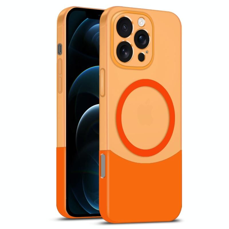 Θήκη τηλεφώνου για iPhone 12 Pro Max, Διπλή Ραφή Χρωμάτων, Μαγνητική PC με MagSafe (Πορτοκαλί)