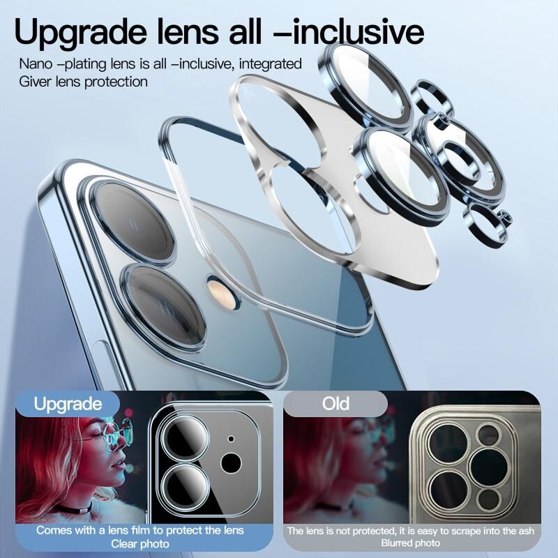Θήκη τηλεφώνου με γυάλινη προστασία φακού για iPhone 12 Pro Max, ανθεκτική στη σκόνη, με ηλεκτρολυτική επίστρωση (Μαύρο)