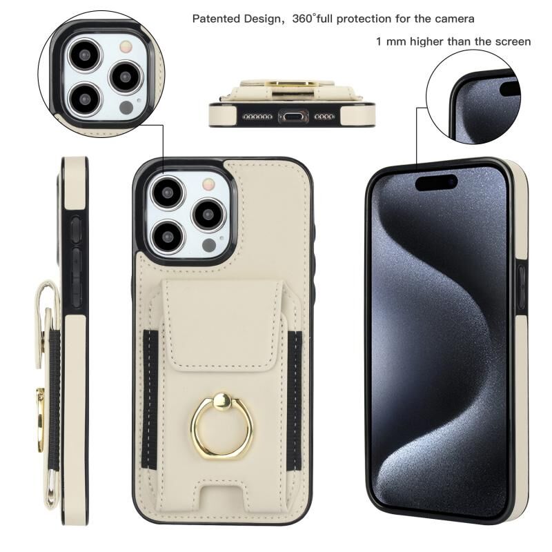 Θήκη τηλεφώνου για iPhone 12 Pro Max με ελαστική τσέπη για κάρτες και δαχτυλίδι στήριξης (Λευκό)