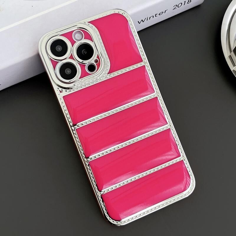 For iPhone 12 Pro Max Electroplated Silver Edge Eiderdown TPU Phone Case(Rose Red)
