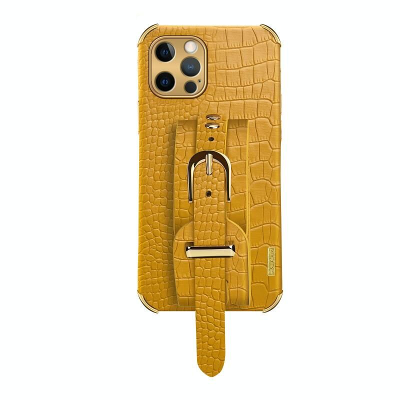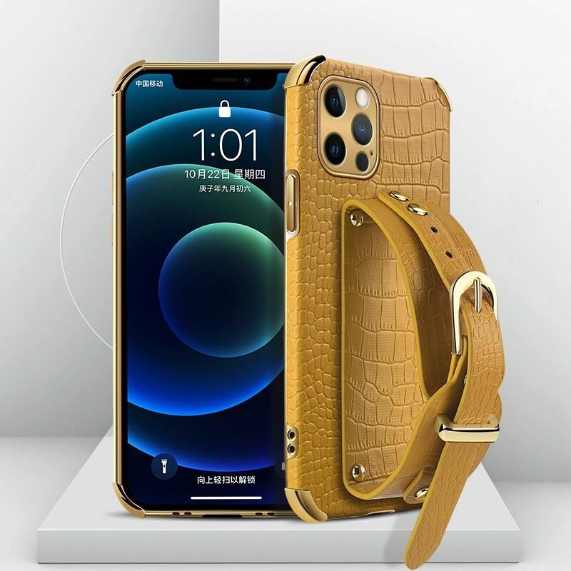 Θήκη για iPhone 12 Pro Max, Ηλεκτρολυτική TPU με Δερμάτινο Μοτίβο Κροκόδειλου και Λουρί Καρπού (Λευκό)
