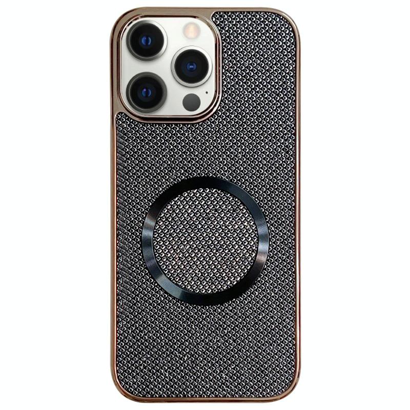 For iPhone 12 Pro Max Electroplating PC Glitter Grain MagSafe Phone Case(Black)