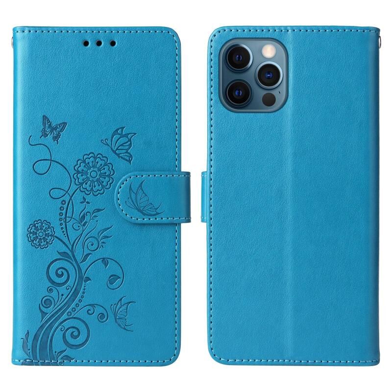 Θήκη τηλεφώνου από δέρμα με ανάγλυφα σχέδια πεταλούδας και λουλουδιών για iPhone 12 Pro Max (Πράσινο)