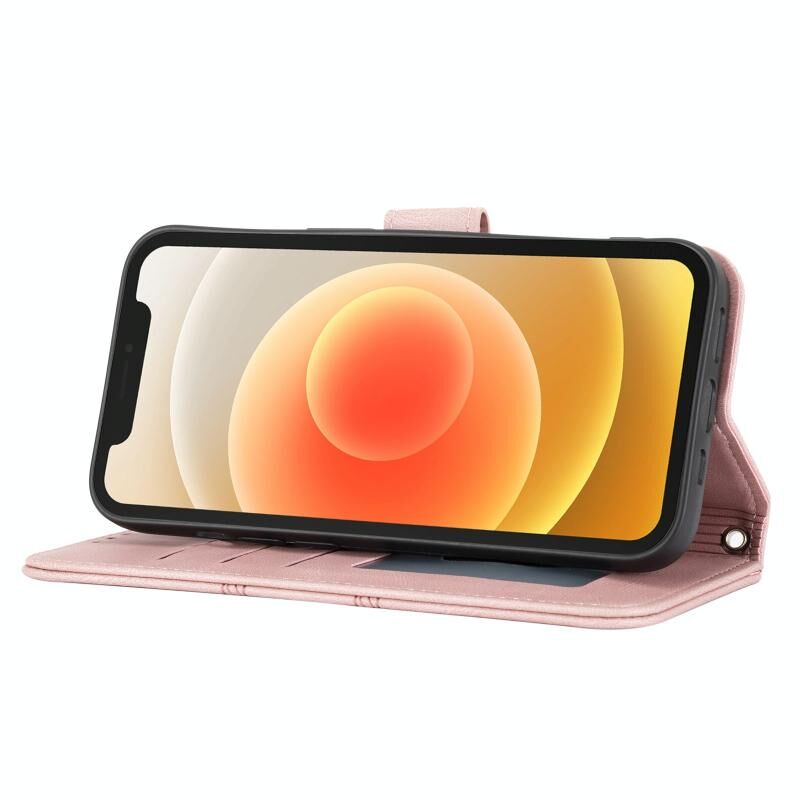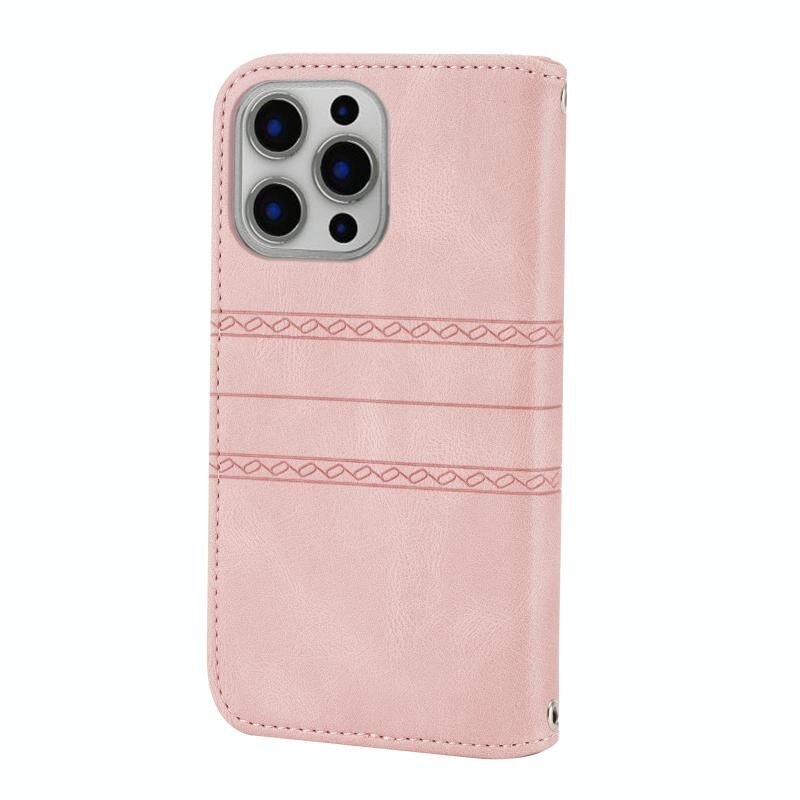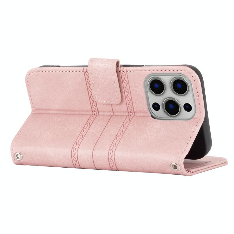 For iPhone 12 Pro Max Embossed Striped Magnetic Buckle PU + TPU Horizontal Flip Leather Case with Holder & Card Slot & Wallet & Photo Frame & Sling(Pink)