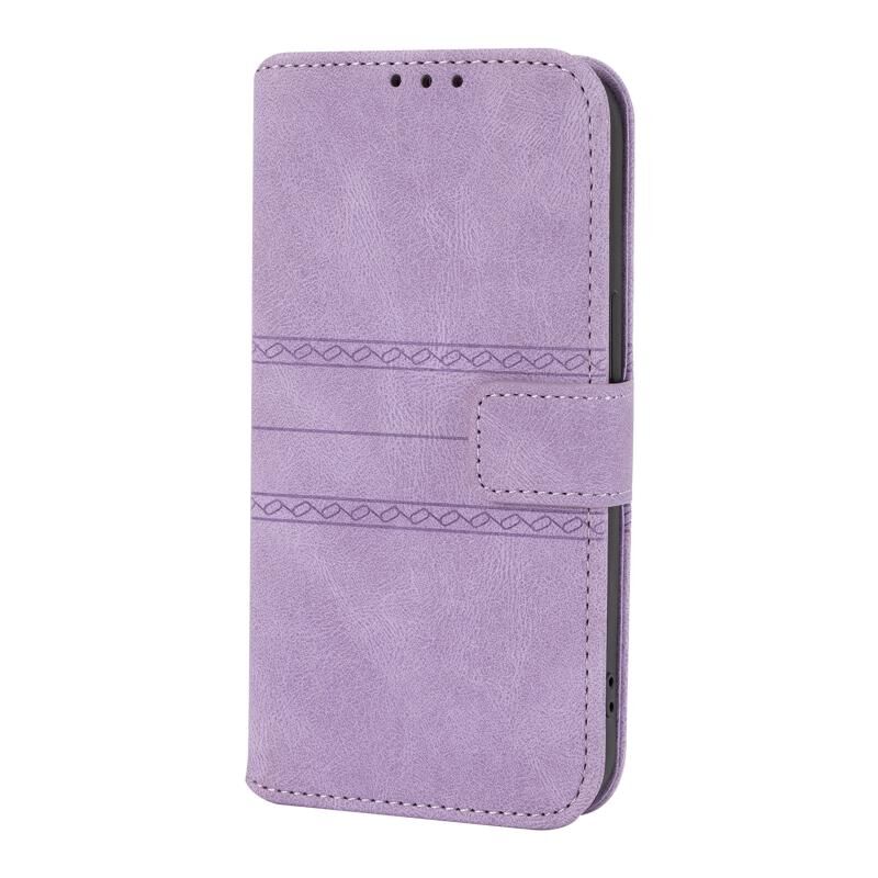 For iPhone 12 Pro Max Embossed Striped Magnetic Buckle PU + TPU Horizontal Flip Leather Case with Holder & Card Slot & Wallet & Photo Frame & Sling(Purple)