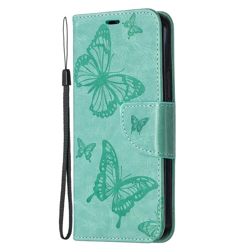 Θήκη για iPhone 12 Pro Max με ανάγλυφο σχέδιο δύο πεταλούδων, οριζόντια, από δερματίνη PU με βάση & θήκη για κάρτες & πορτοφόλι & κορδόνι (Κόκκινο του Ρόδου)