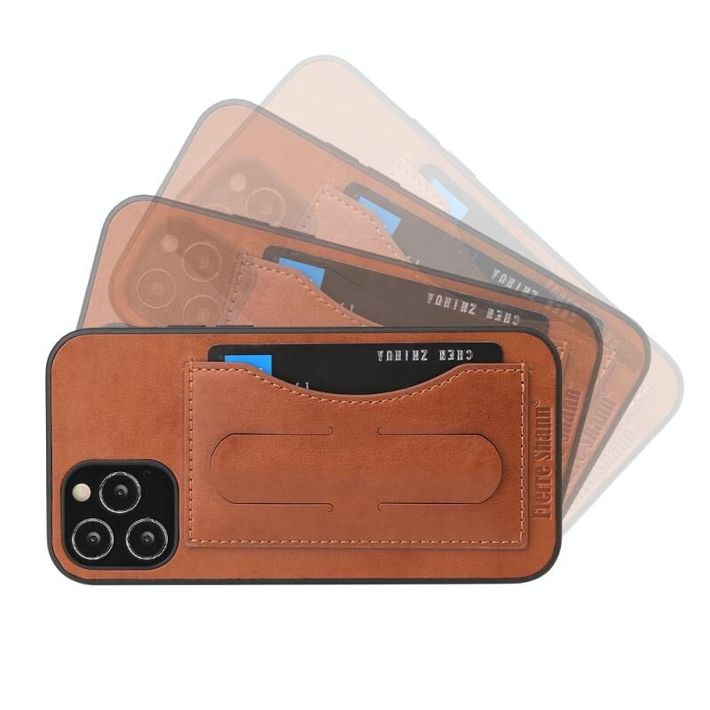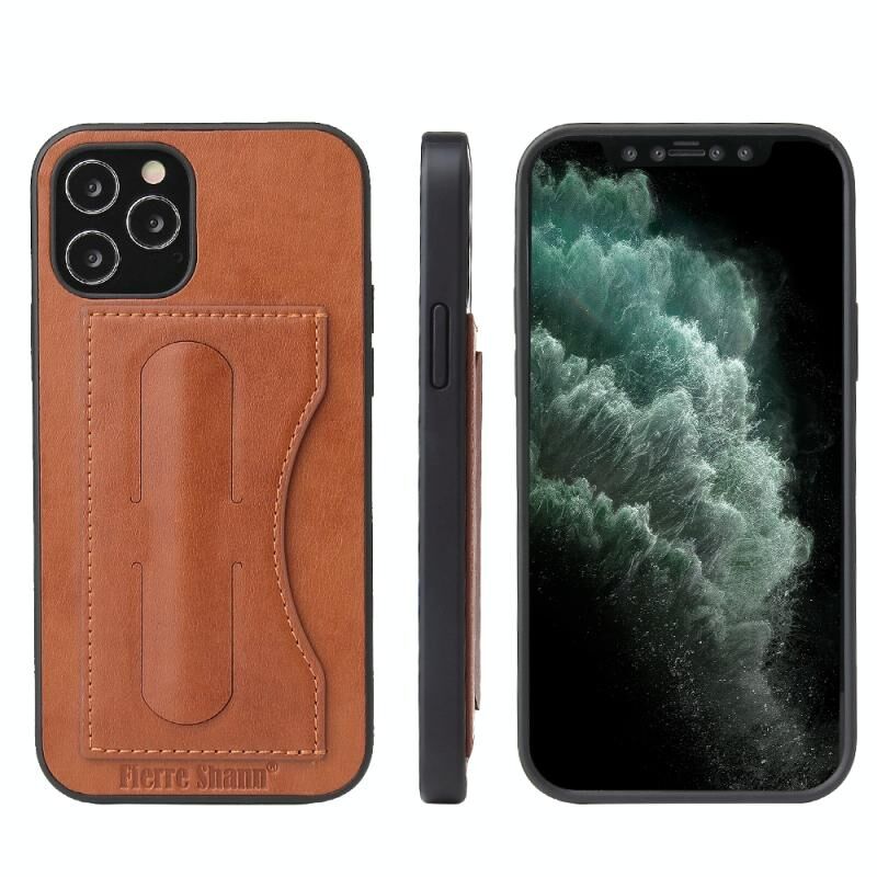 Θήκη δέρματος πλήρους κάλυψης Fierre Shann για iPhone 12 Pro Max με θήκη και υποδοχή κάρτας (Μαύρο)
