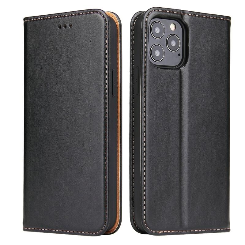 Θήκη δέρματος Fierre Shann PU με υφή γνήσιου δέρματος, οριζόντια, αναδιπλούμενη για iPhone 12 Pro Max με βάση & υποδοχές καρτών & πορτοφόλι (Μαύρο) (FIERRE SHANN)
