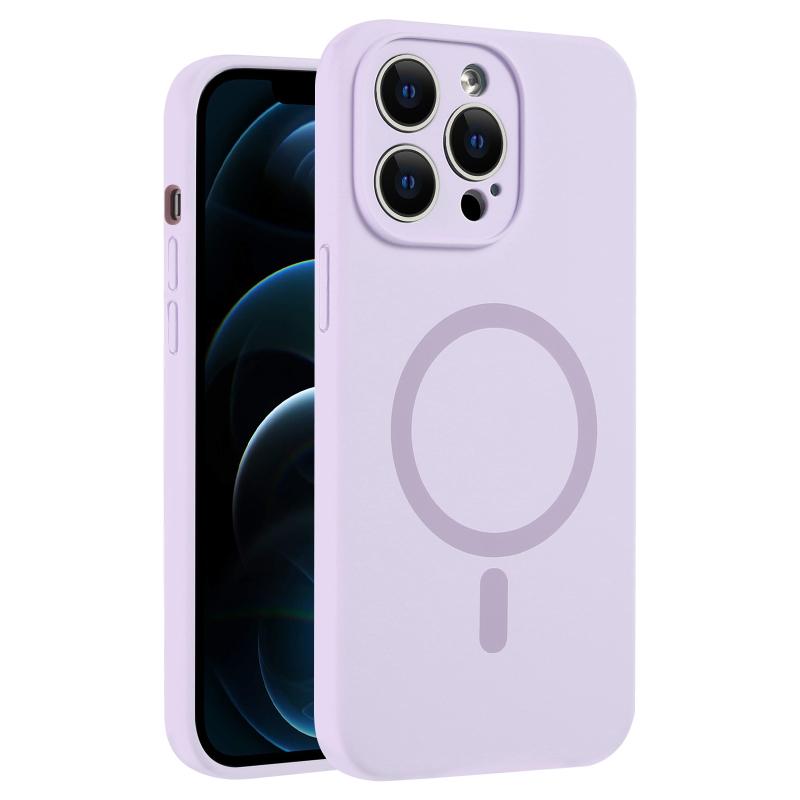 For iPhone 12 Pro Max Fine Hole Pure Color Liquid Silicone MagSafe Phone Case(Lilac)