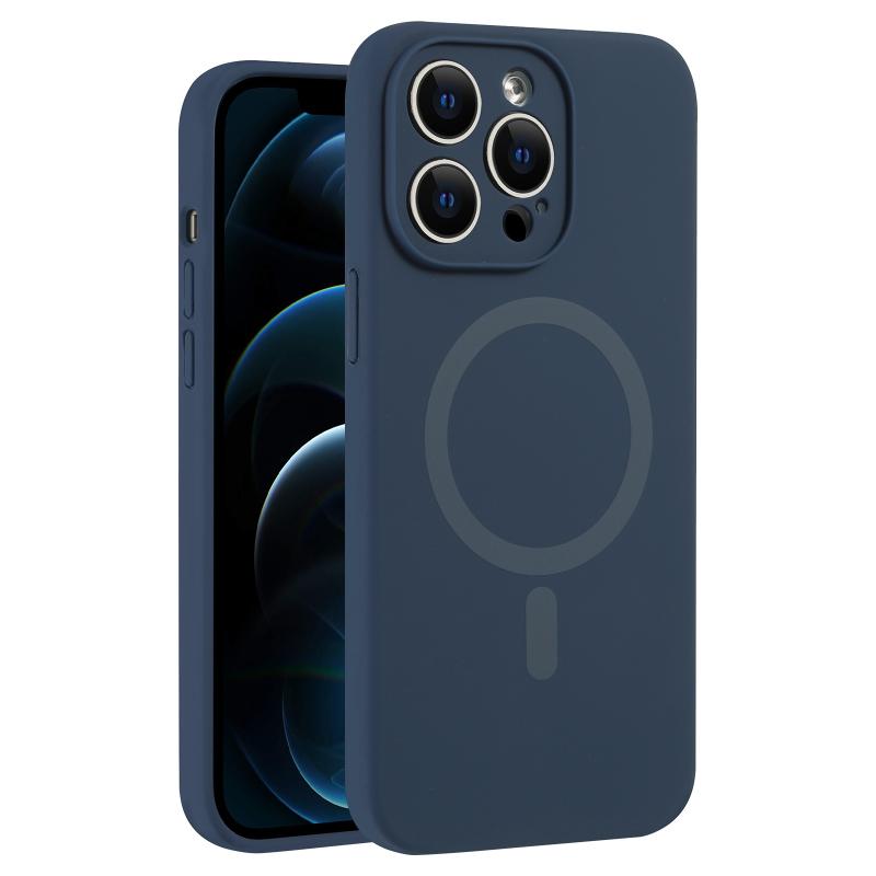 For iPhone 12 Pro Max Fine Hole Pure Color Liquid Silicone MagSafe Phone Case(Navy Blue)