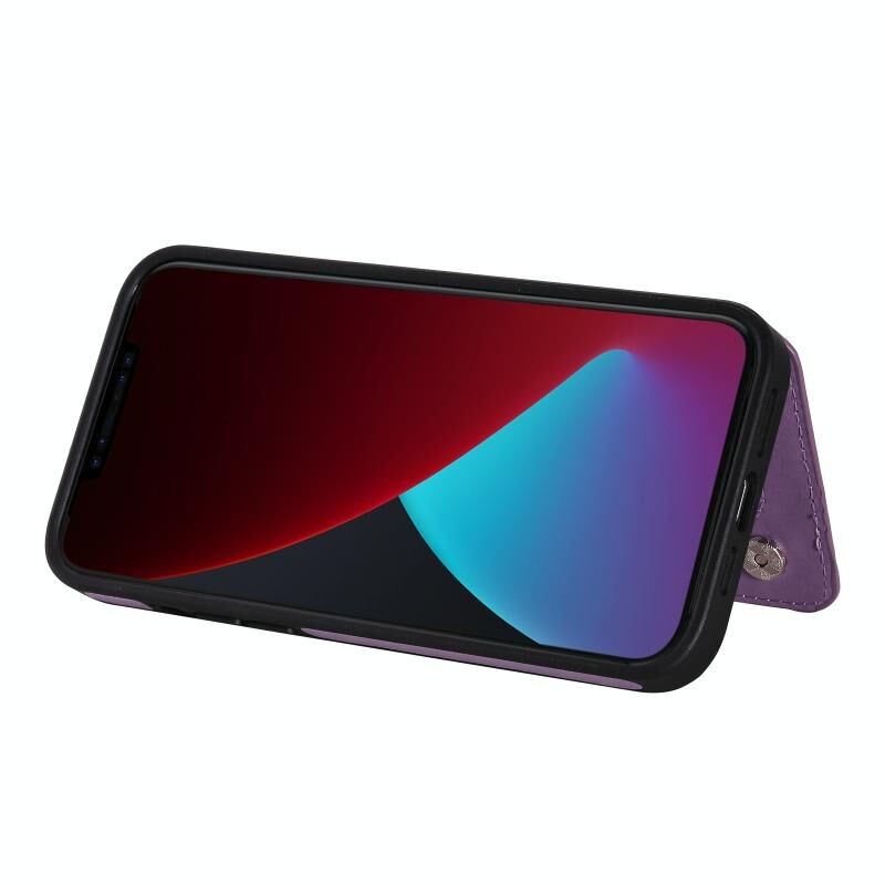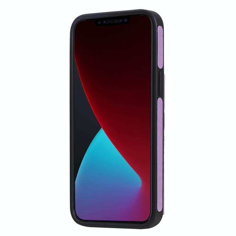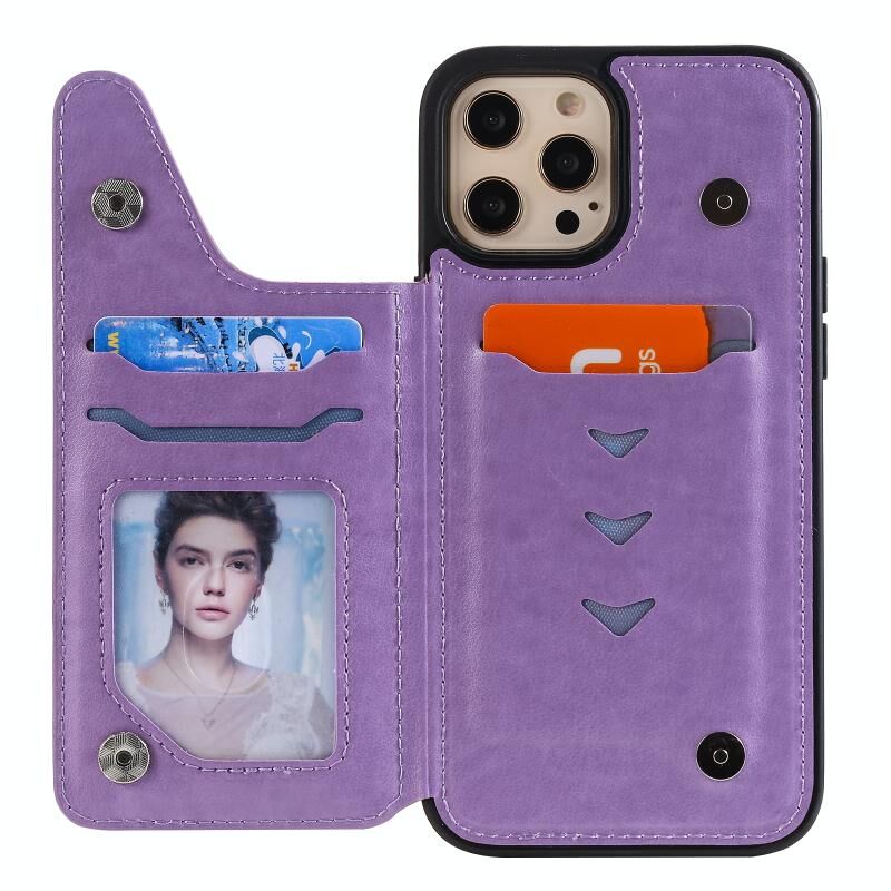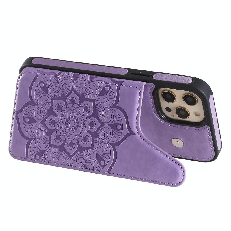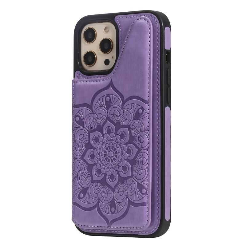 For iPhone 12 Pro Max Flower Embossing Pattern Shockproof Protective Case with Holder & Card Slots & Photo Frame(Purple)