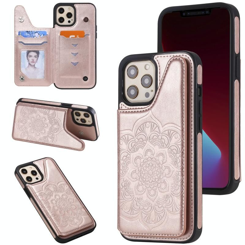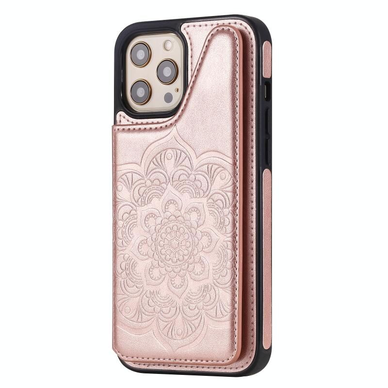 Θήκη προστασίας για iPhone 12 Pro Max με ανάγλυφο σχέδιο λουλουδιών, αντικραδασμική, με βάση στήριξης & θήκες για κάρτες & κορνίζα φωτογραφιών (Μωβ)
